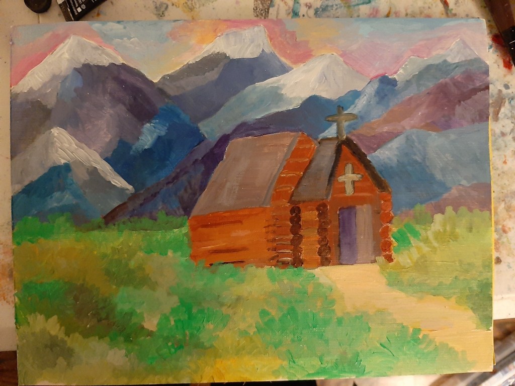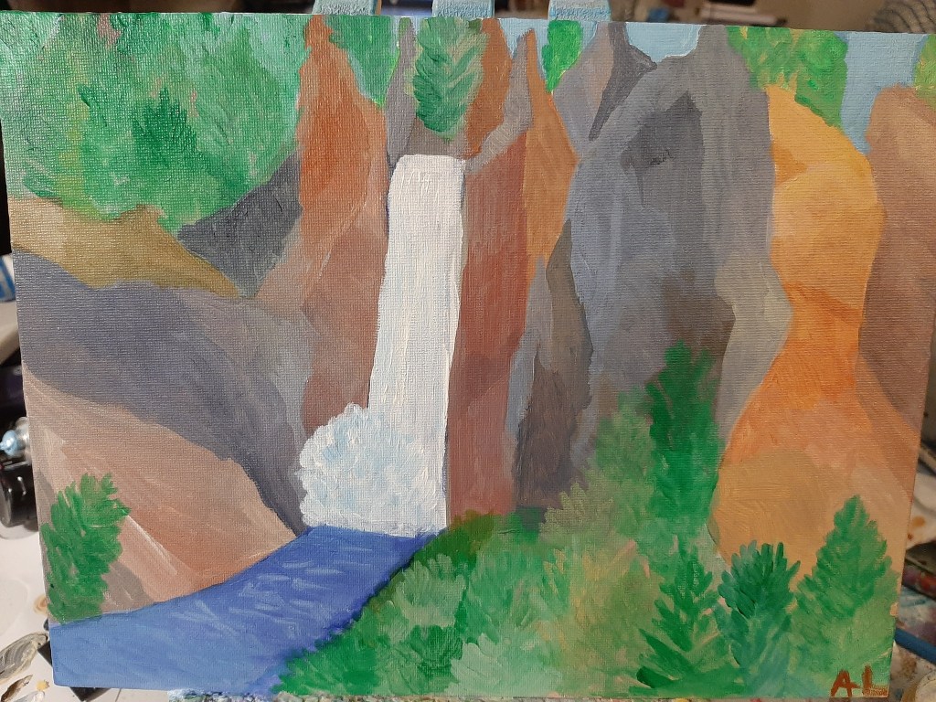 Value is all around us – and I encourage you to observe and take notice of different contrasts of light and dark and how colors appear in nature. Sometimes I paint something that seems counterintuitive to what I would assume because the reference photo has a different value. ex: I know the mountains are grey and green – but they appear blue so I paint a cool blue based on the value and representation of color in the photo.