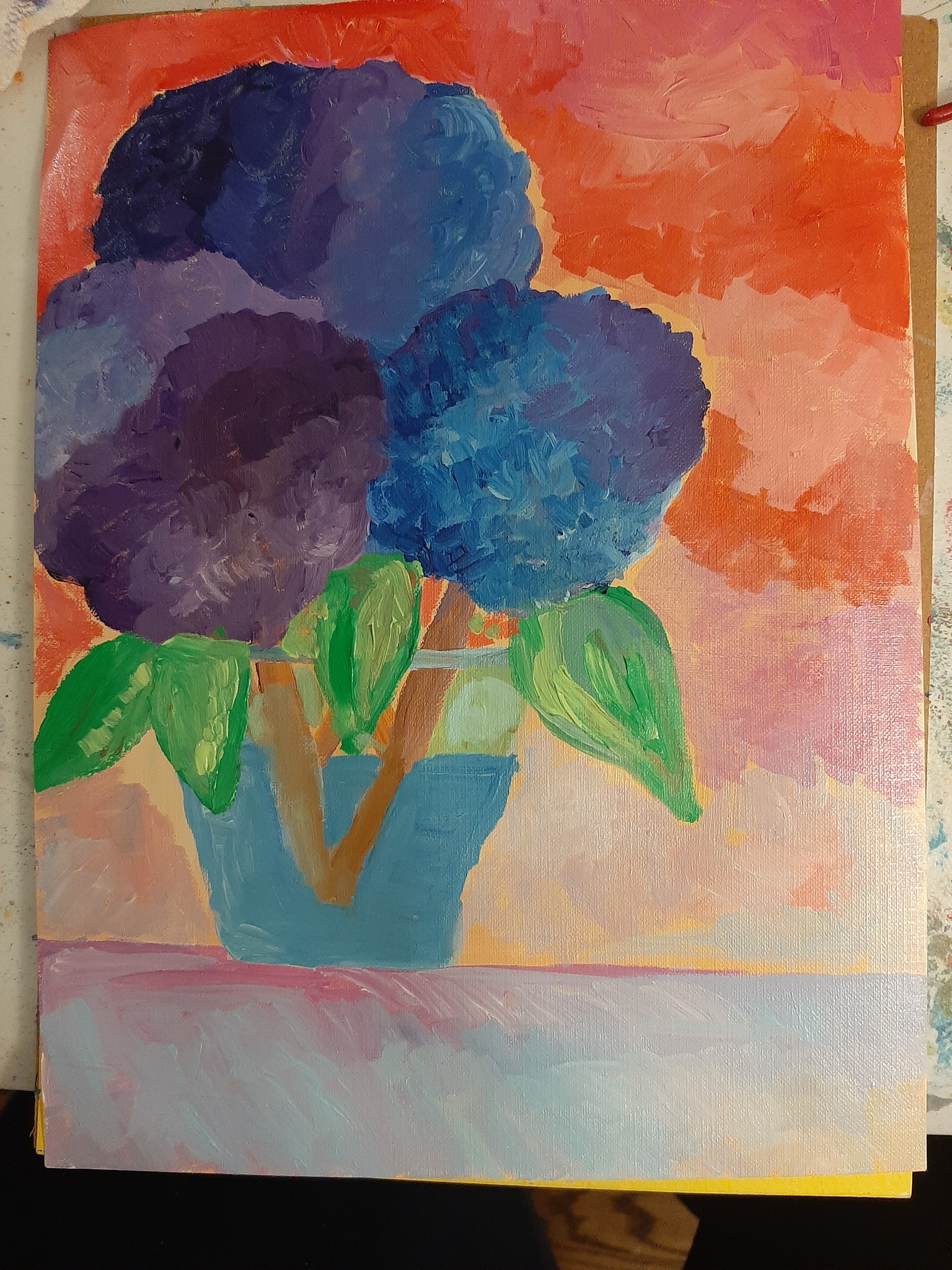 This month I am enjoying playing with color. I haven’t had time for large art projects but have carved out time for painting several times per week – focusing on flowers.