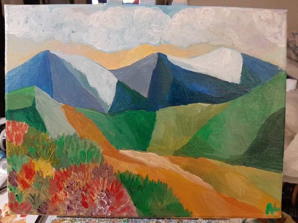 Continuing my theme of ‘Chasing Impressionism’ I enjoyed creating a vibrant Impressionist scene showcasing the majesty of the mountains as spring takes flight.